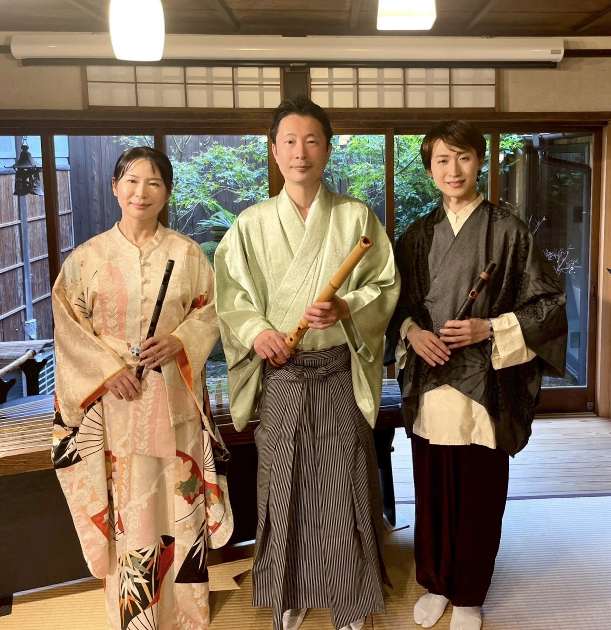 今回は、小泉先生とは長いお付き合いで、お箏と尺八の名手でいらっしゃる折本慶太先生をゲストとしてお招きしました。