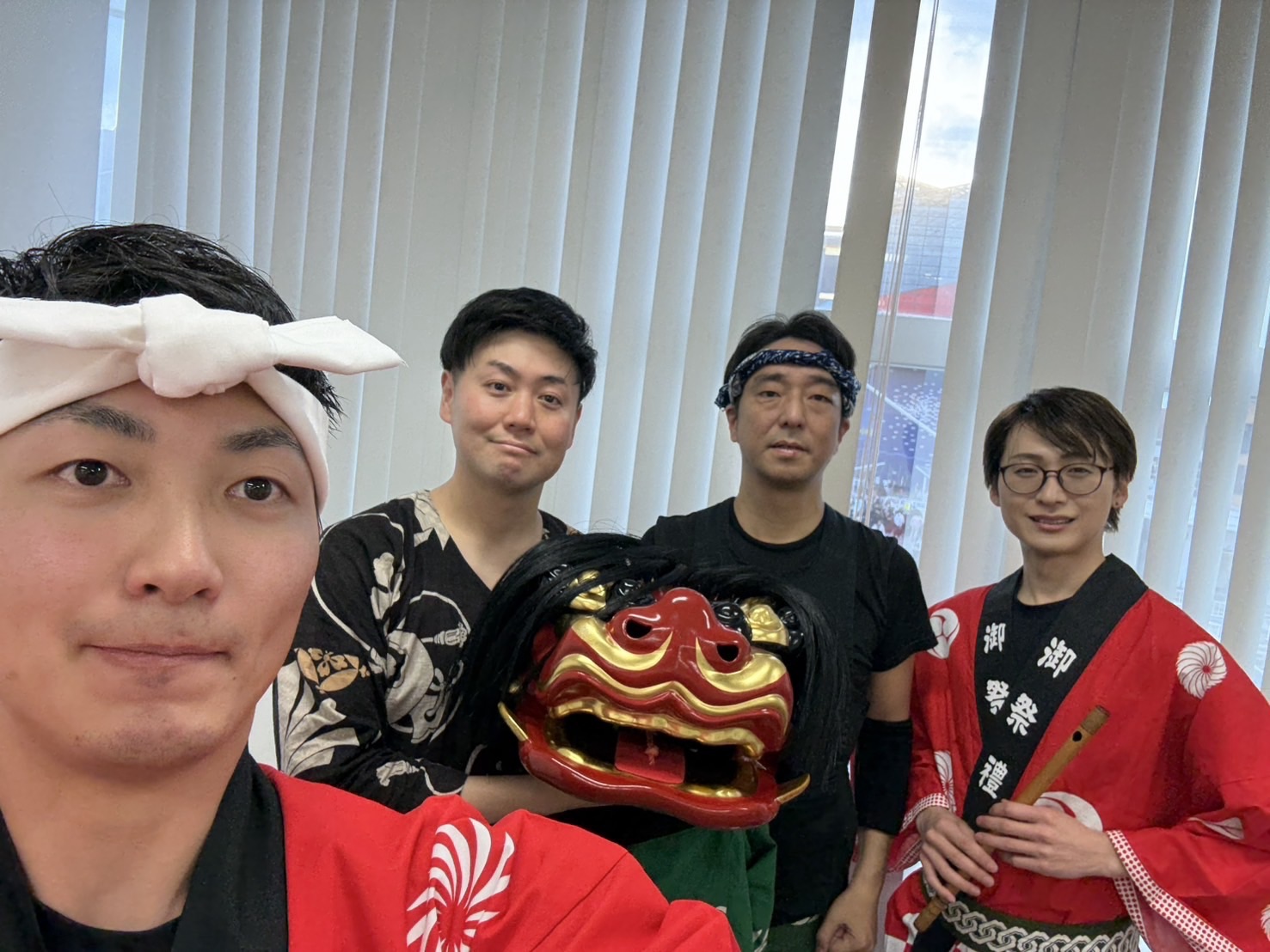 また今年は、和太鼓奏者の林昴汰氏(写真左)にお声がけし、獅子舞の囃子方をご一緒させていただいております。