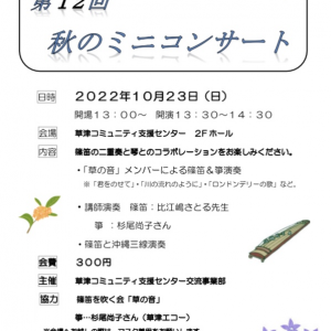 Info 篠笛を吹く会「草の音」第12回秋のミニコンサート♬
